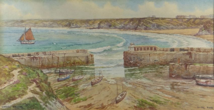 DOUGLAS HOUZEN PINDER (1886-1949) watercolour - Newquay Harbour, signed, 20 x 37cms