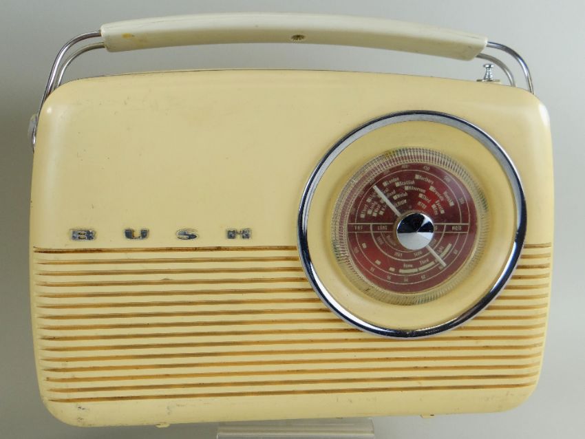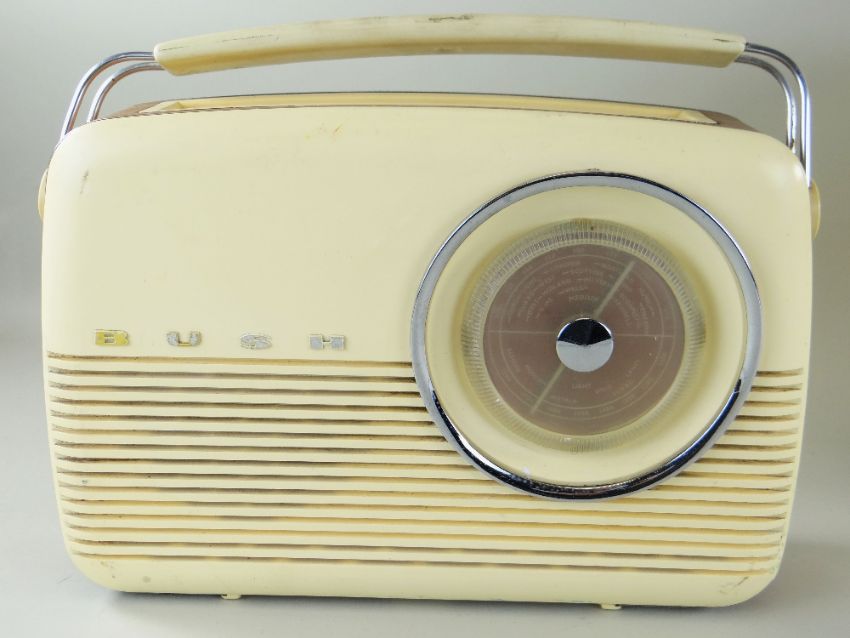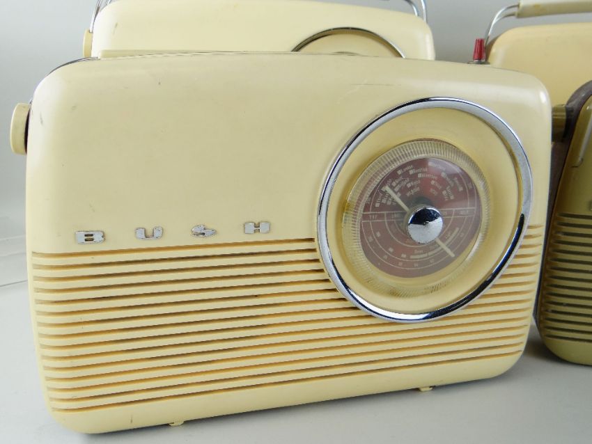 FOUR VINTAGE BUSH RADIOS, VTR103 & TR82 models in cream Bakelite and simulated leather (various conditions) (4)