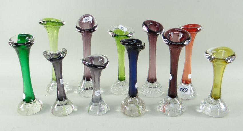ASSORTED SWEDISH ART GLASS 'BONE' VASES in various colours, all with bubble bases, probably by Aseda (11)