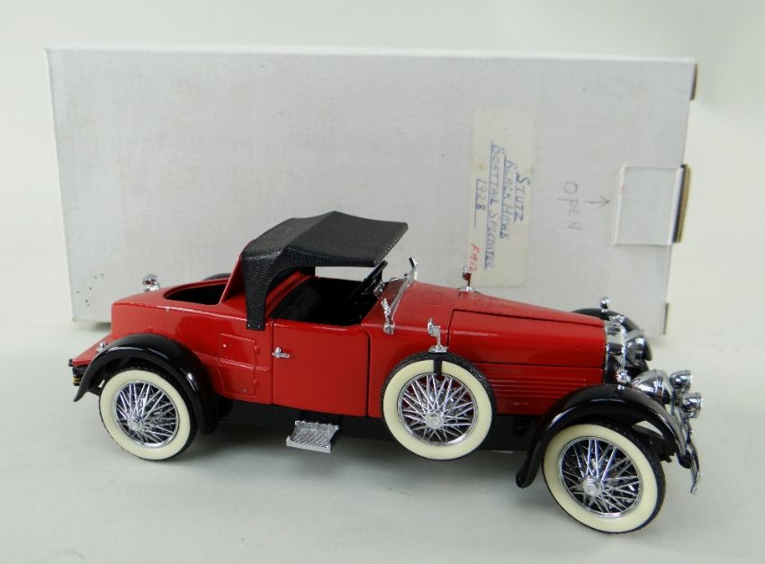 FOUR FRANKLIN MINT DIECAST 1:24 SCALE MODEL CARS, comprising Jaguar SS100 1938, Mercedes Benz 300SL 1954, Duezenberg J Derham Tourster 1930 and Stutz Black Hawk Boat-tail Speedster 1928 (missing windscreen, rear right bumper loose), with tags (4)