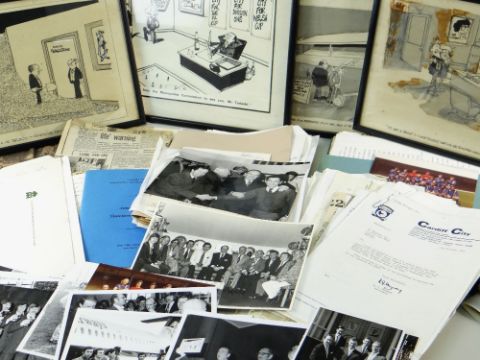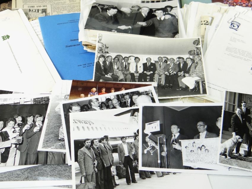 INTERESTING COLLECTION OF CARDIFF CITY FC MEMORABILIA FROM THE 1970s including photographs, newspaper cutting in a scrapbook, four Gren cartoons (framed), copies of letters, minutes of meetings, photographs, ticket stubs ETC., in particular relating to Stefan Terlezki, Chairman of Cardiff City mid-70s