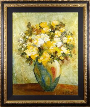 ALICIA QUAINI acrylics on canvas - two still lives of flowers in vases, inscribed and dated verso 2001 and 2005, 75 x 60cms and 39 x 49cms; and two other contemporary art works (4)