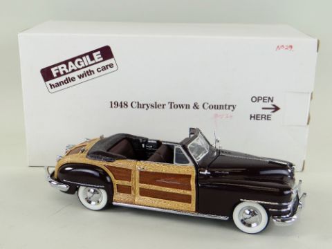 FOUR DANBURY MINT 1:24 SCALE DIECAST MODEL CARS, comprising Ford Deluxe Coupe 1940, Chrysler Town and Country 1948, Mercury Club Coupe 1949 and Jaguar XK120 1949 (4)