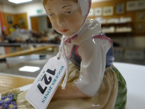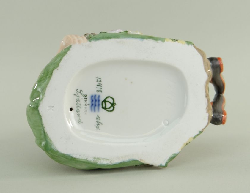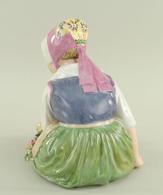 ROYAL COPENHAGEN FIGURE OF 'SEALAND FLOWER GIRL' No. 12418, 1969 by Carl Martin Hansen from a series of Danish regional costumes, painted and impressed numeral, painted title 'Sjalland', printed conforming date code, 10cms high