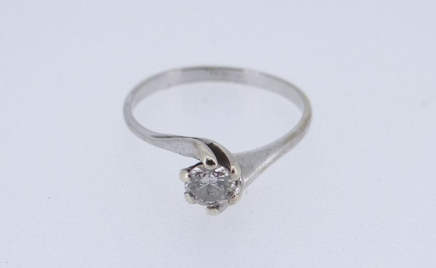 WHITE METAL SINGLE STONE DIAMOND RING, 0.2cts approximately (visual estimate), 1.6gms