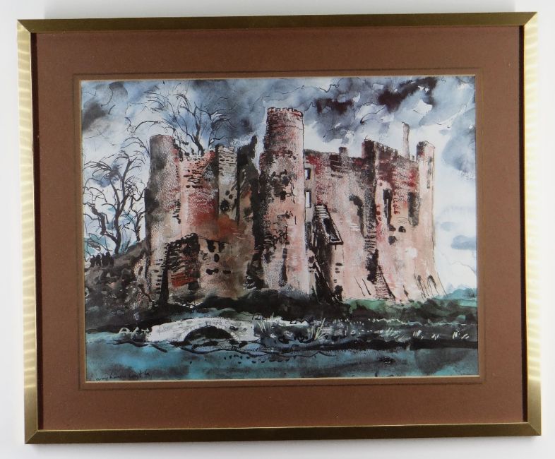 JOHN PIPER decorative colour reproduction print - Laugharne Castle, 25 x 45.5cms