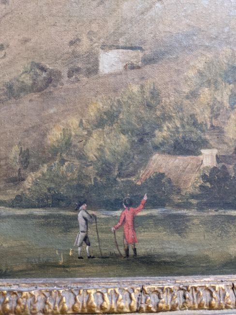 Condition Report: canvas torn in two places, 19th Century plaster frame missing many sections