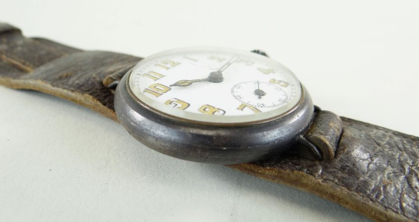 Condition report: dial cracked between 3-5, lume partially missing form several numbers, lume from minute hand lacking. winds but does not keep time.