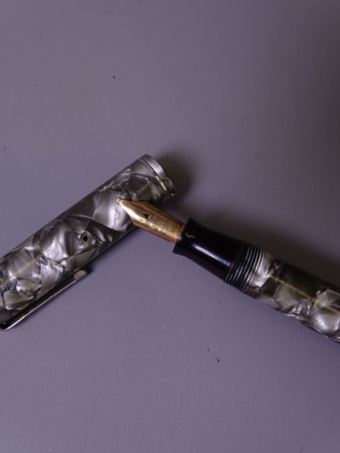 WATERMAN - Vintage (1933-1938) Grey Marble Waterman 32v fountain pen with chrome trim and Canadian 14ct gold Waterman's Ideal nib, approx 11cms, capped and Vintage (1950s) Black Waterman W3 fountain pen with gold plated trim and original W-2B 14ct gold nib