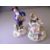SITZENDORF PORCELAIN FIGURINES, a pair, modelled as a blue jacketed gallant and a bonneted young girl in green bodice with a dog on her lap, Rococo style bases with both figures having sheep at their feet, factory marks in underglaze blue to the bases, 18 and 1.5cm heights (two very slight leaf losses)
