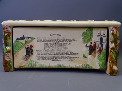 CROWN DEVON 'DAISY BELL' OBLONG MUSICAL BOX, No 813582, having a fall-front drawer (in working order, 21 x 12cms)