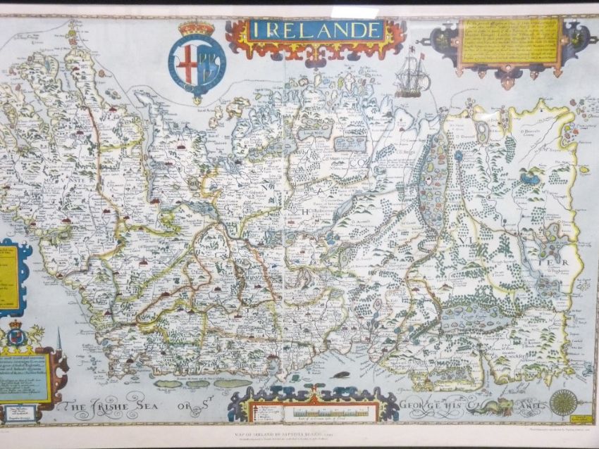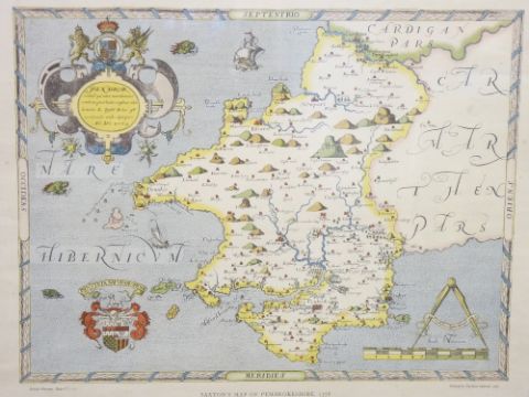 BUPTISTA BOAZIA - map of Ireland, 57 x 90cms and 'Saxtons' map of Pembrokeshire 1578, 40 x 52cms