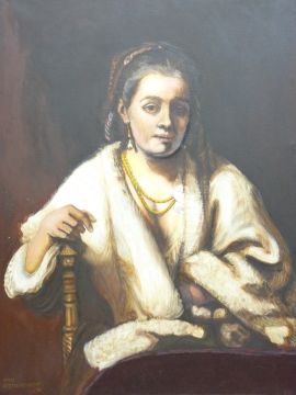 AFTER REMBRANDT, signed 'GASK 79' large oil on canvas - label verso 'Portrait of Hendrickje Stoffells', gilt framed, 100 x 85cms