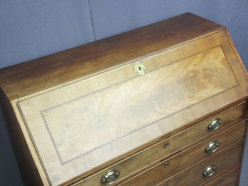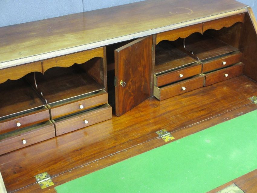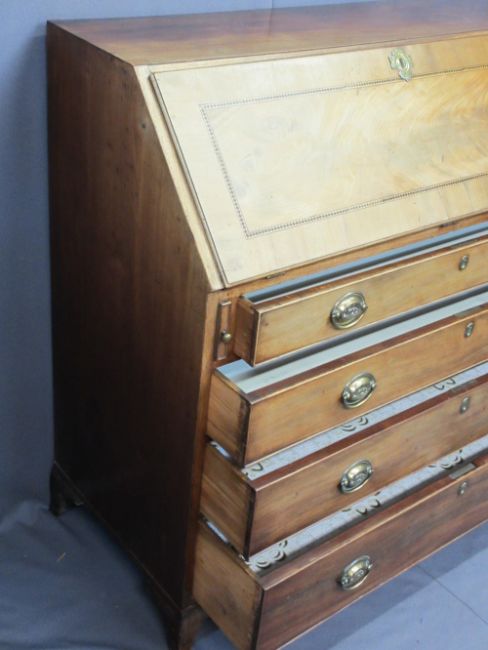 GEORGIAN MAHOGANY BUREAU with fitter interior over four graduated drawers, 108cms H, 108cms W, 52cms D