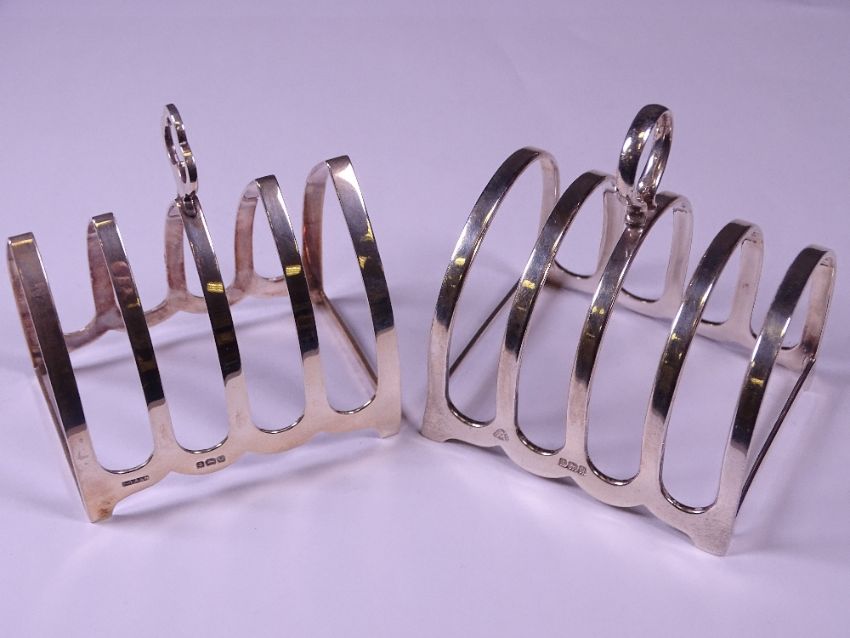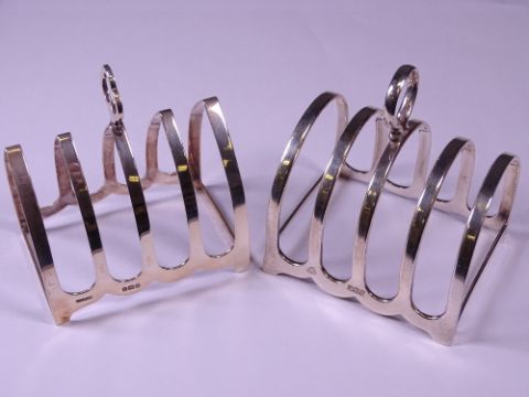 BIRMINGHAM SILVER TOAST RACKS (2), dated 1940, makers Adie Brothers Ltd and F H Adams & Holman, both four section, 8cm lengths, 4.9 troy ozs gross