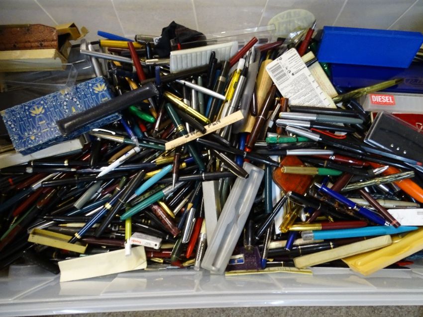 VINTAGE & LATER FOUNTAIN PENS, BALL POINTS and associated bits and pieces, a very large quantity for spares or repairs