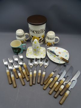 HORNSEA JOHN CLAPPISON LION MUG, Crown Devon Mary Quant Denby agate cutlery, Jessie Tait ETC