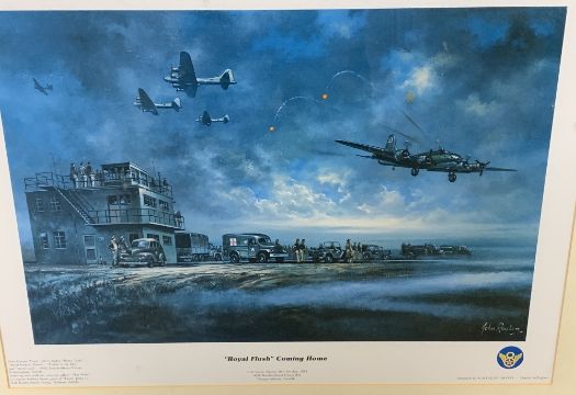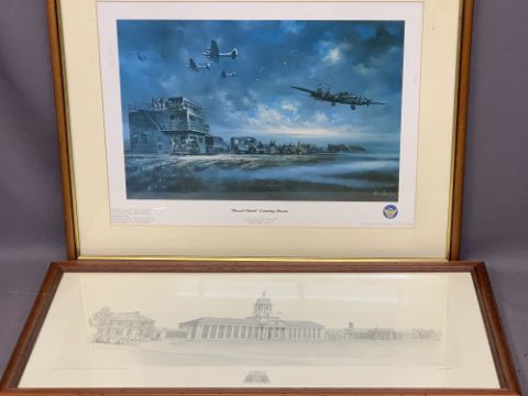 JOHN WESTERN print - The Royal Air Force College, Cranwell, 36 x 73cms and JOHN RAYSON print 'Royal Flush, coming home', by Nostalgic Prints, 41 x 55cms