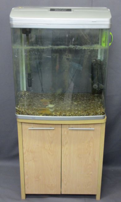 'AQUA ONE' CURVED GLASS AQUARIUM, model Aqua Style 620T, with a modern two door cupboard E/T
