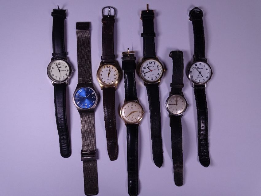 9CT GOLD CASED CYMA/CYMAFLEX & OTHER GENTLEMAN'S WRISTWATCHES including a Bering/Titanium with original woven stainless steel strap, vintage Roamer Popular on leather strap with four others
