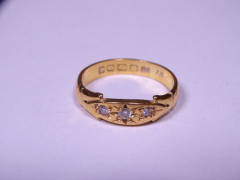 22CT GOLD RING set with three small diamonds, size mid S-T, 6.5grms