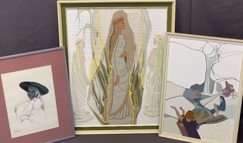 STEPHEN PEARSON - Retro print - 'A Girl' and two large OIL ON BOARDS - Contemporary figure scenes