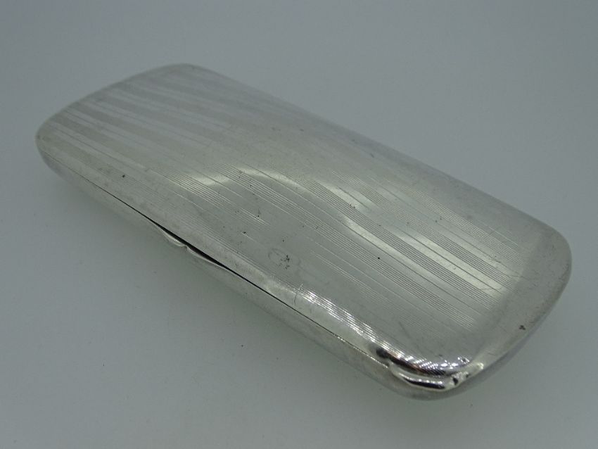SILVER GLASSES CASE with sprung lid bearing crown and crescent marks for German silver of 935 grade, C1935, 78grms
