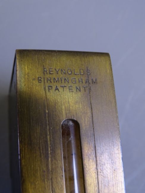 RARE REYNOLDS BIRMINGHAM 12IN PATENT, ROSEWOOD & BRASS INCLINOMETER LEVEL in a fitted case