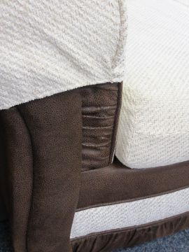 SOFA/BED SETTEE in faux suede and woven upholstery, metal sprung action interior bed with mattress, 83cms H, 186cms W, 99cms D (closed)