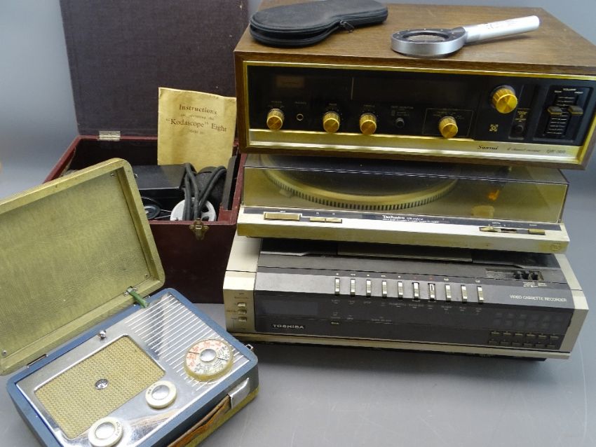 TOSHIBA TOP LOADING BETAMAX VIDEO RECORDER, Technics Quart SL-Q202 turntable, Sansui receiver, cased Kodak 'Kodascope 8' projector and a Pye cased wireless