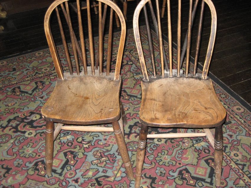 Condition Report: General fading and one chair seat with a stress split, two further non-matching spindle backed Windsor chairs (faded)