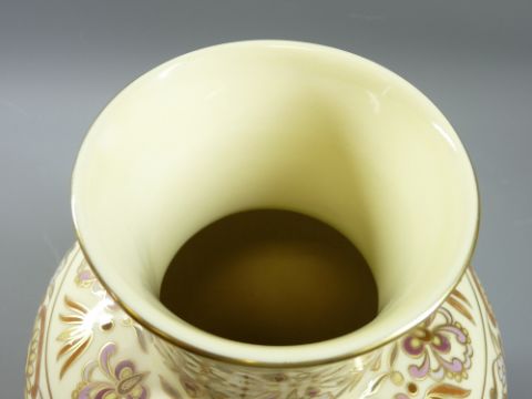 HUNGARIAN WARE - large fine floral decorated bulbous vase with chimney style neck, 29cms H and written at the base with blue Hungarian mark - 'Unique Piece by Miss M Nagy'