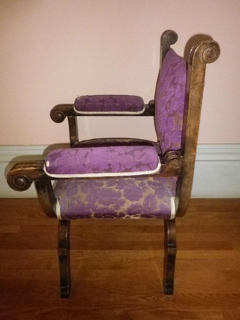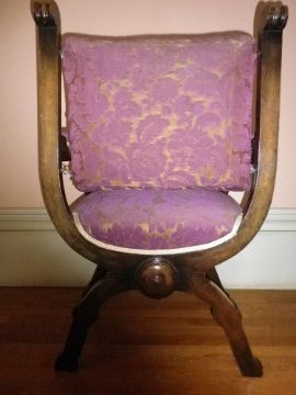 ANTIQUE WALNUT X FRAME ARMCHAIR, 98cms H, 66cms W, 45cms seat depth