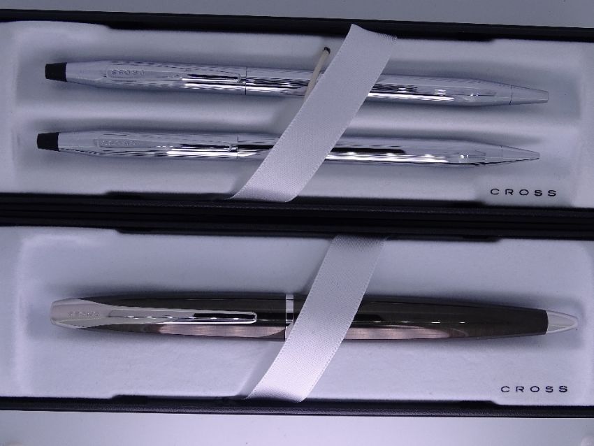 CROSS - Modern Chrome Lustre Classic Century Cross Ensemble Pen and Pencil Set. In original box. NOS and Modern Vernal Green Lacquer Cross ATX ballpoint pen. In original box. NOS