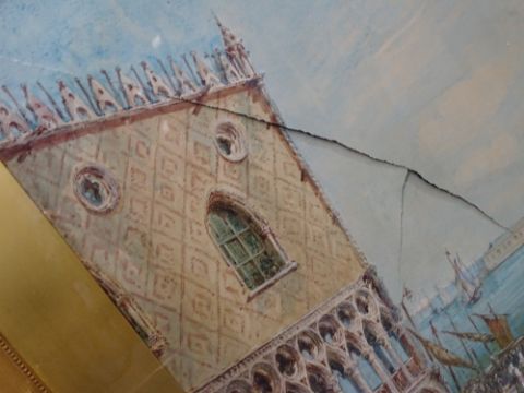 W H LITTLEWOOD watercolour - Venetian Scene, 62 x 93cms (evidence of foxing and stress related tear across the painting)