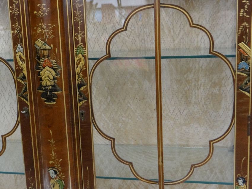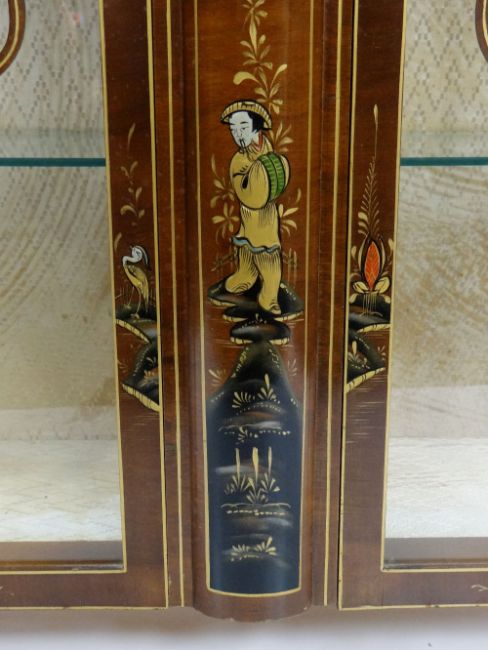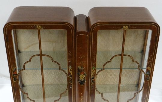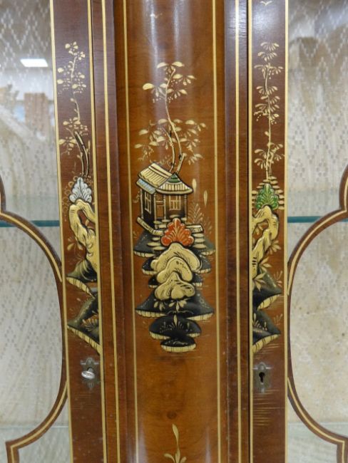 1930s TURNIDGE WALNUT & CHINOISERIE DECORATED DISPLAY CABINET, 105 x 31 x 117cms