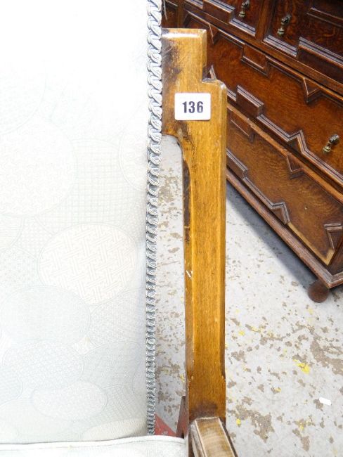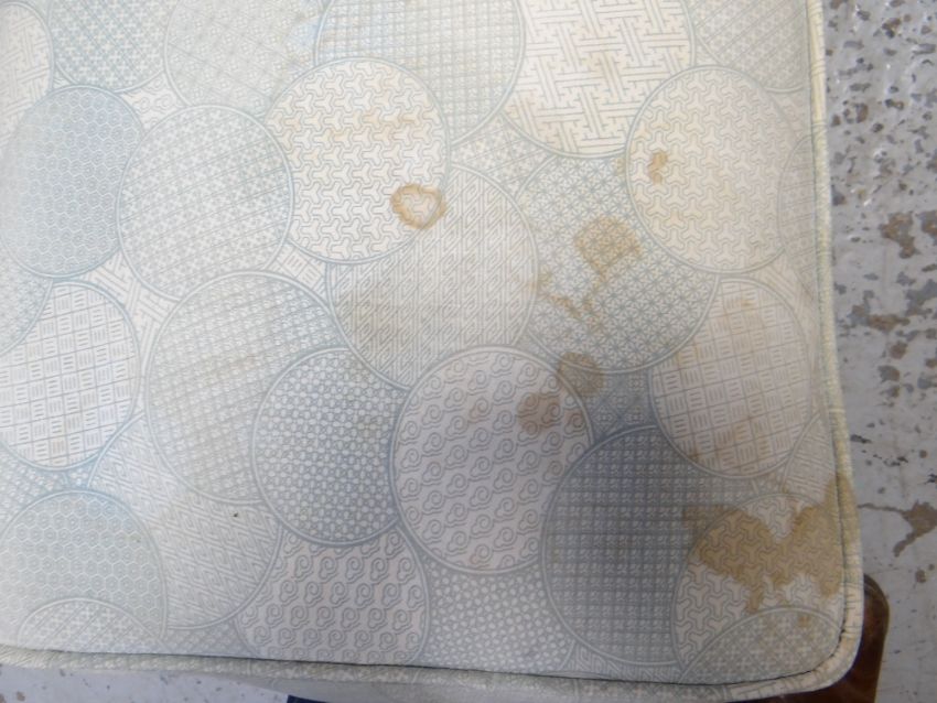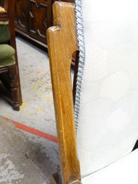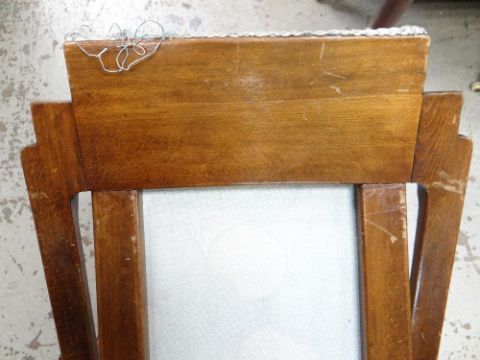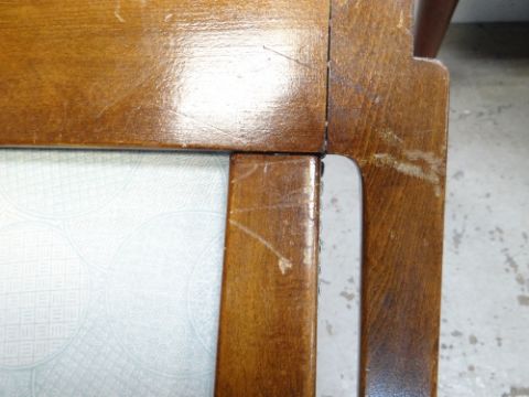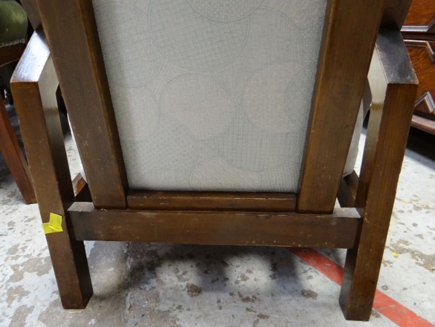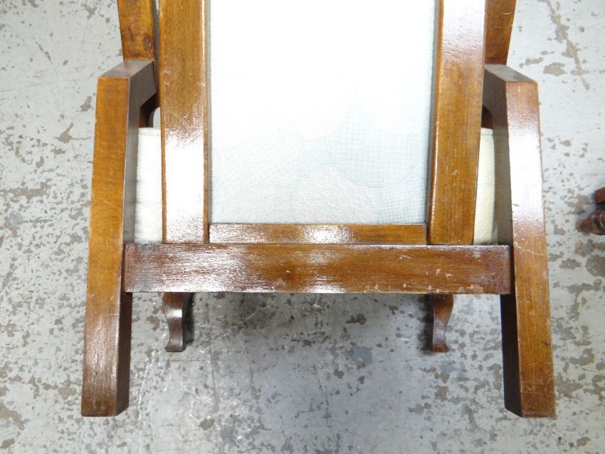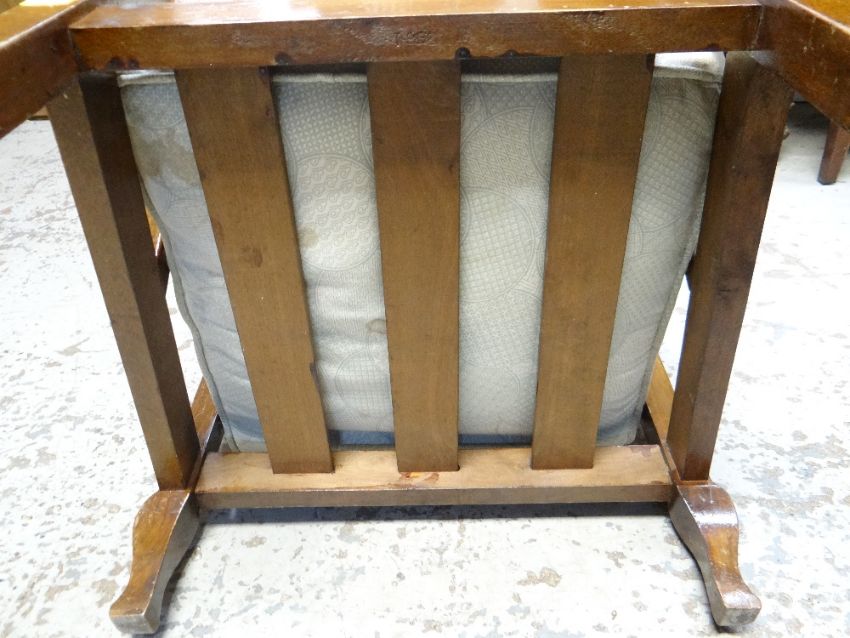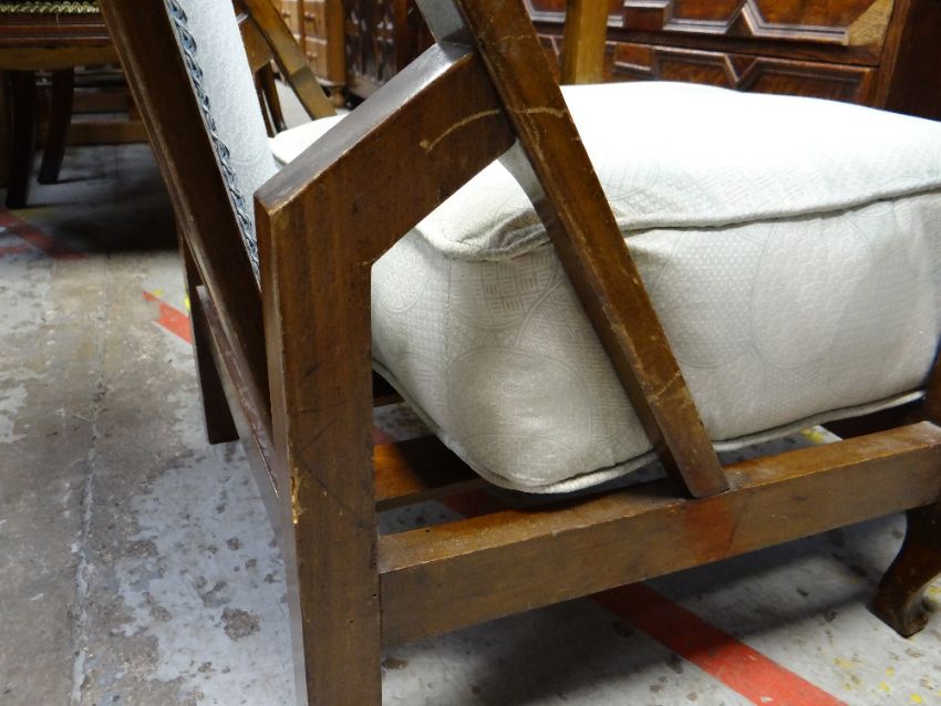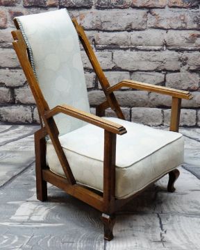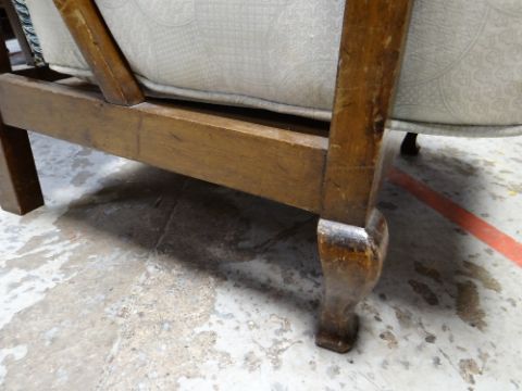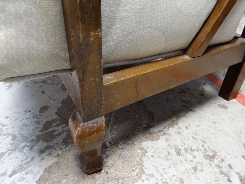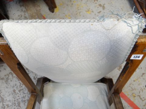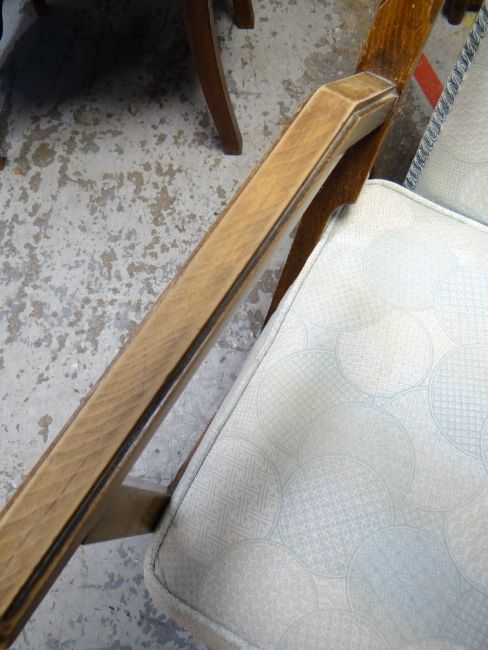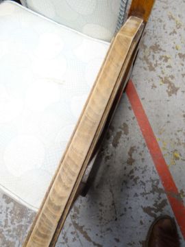 EARLY 20TH CENTURY ART DECO-STYLE BEDROOM CHAIRThere is general wear all over.Light scratches and paint spots.There is heavy staining to the seat cushion and the stitching has come loose on the back cushion.The wood on the arms has faded.There is no worm.It does look like the wood has been stained or vanished.Height – 81cm’sDepth – 70cm’sWidth – 51cm’sSeat height – 34cm’s