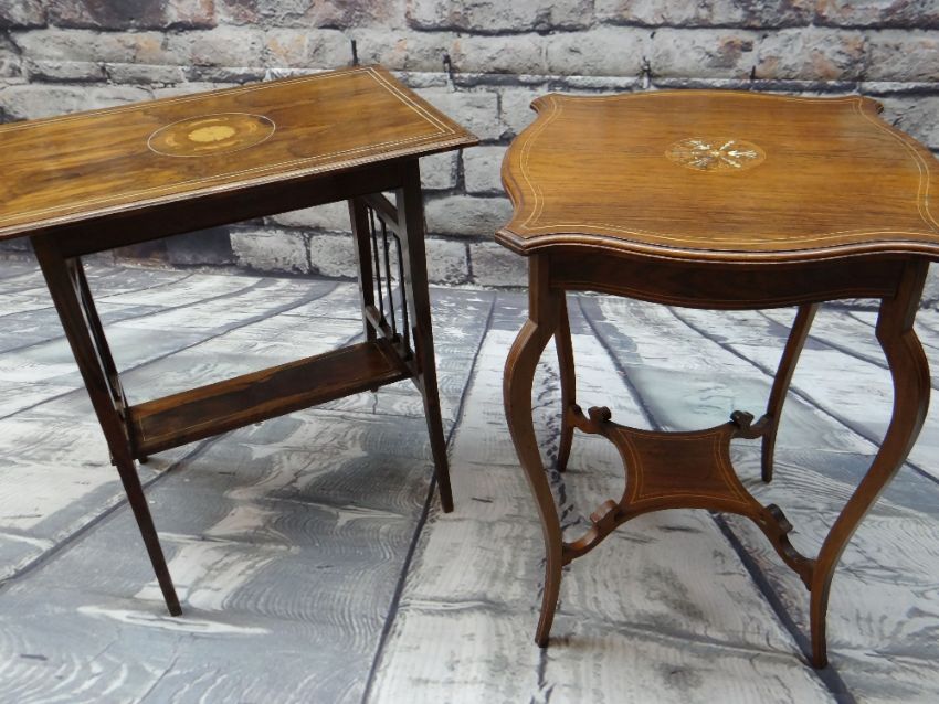 TWO EDWARDIAN ROSEWOOD MARQUETRY OCCASIONAL TABLES, 64 x 47cms wide respectively (2)