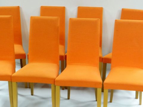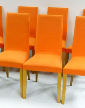 DIDIER GOMEZ FOR LIGNE-ROSET: SET OF EIGHT DINING CHAIRS, upholstered in orange fabric (removable) (8)