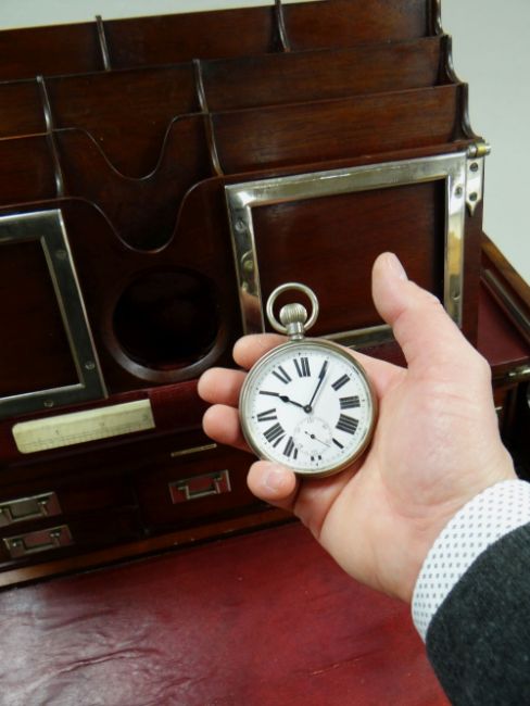 Condition Report: one metal bracket missing to stationery compartment, leather rippled and torn.
