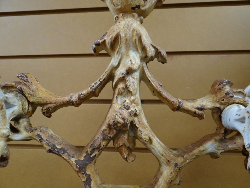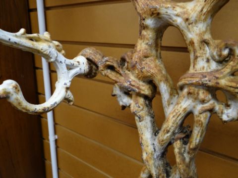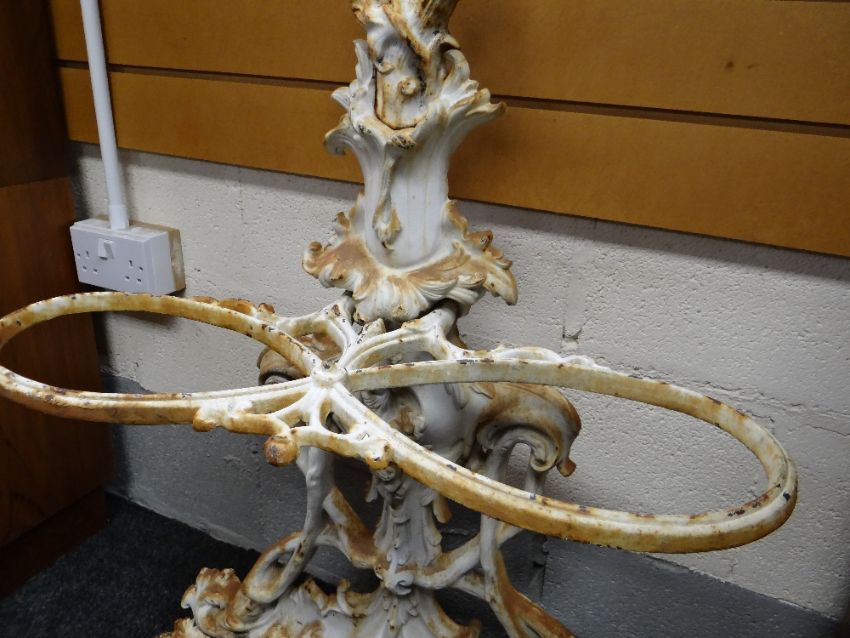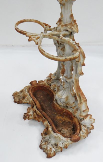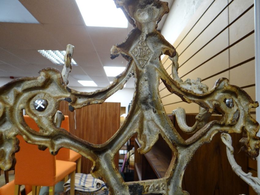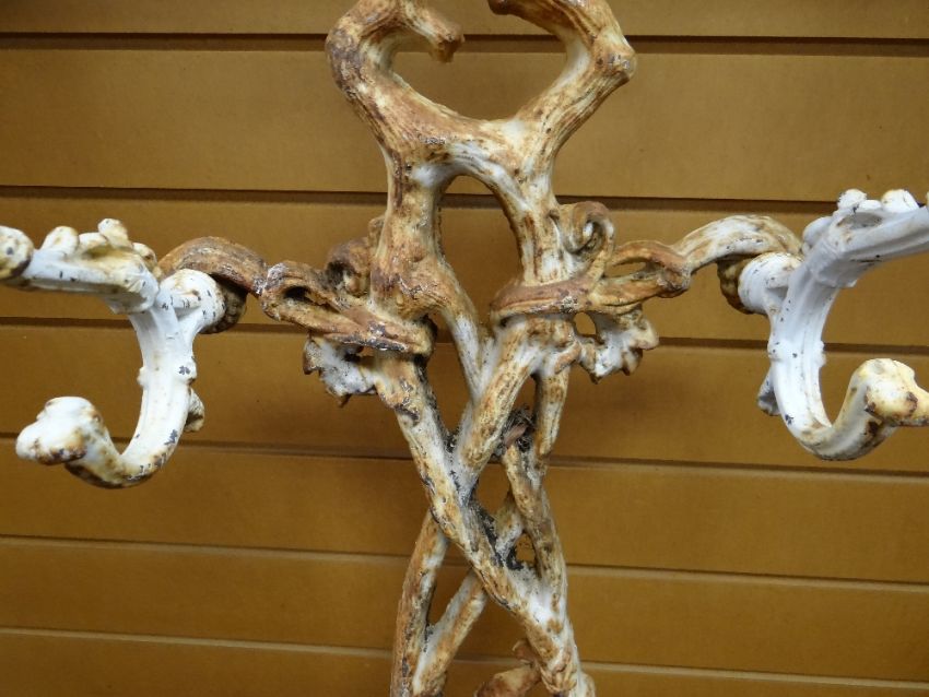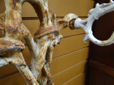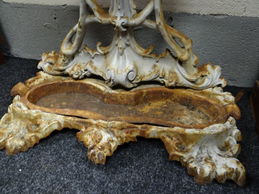 VICTORIAN COALBROOKDALE CAST IRON HALL STAND, white painted and case with fruiting vine decoration, drip pan marked 'Coalbrookdale', 204 x 74 x 34cms