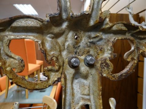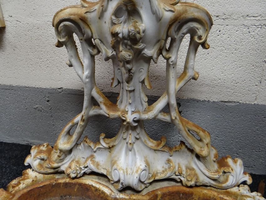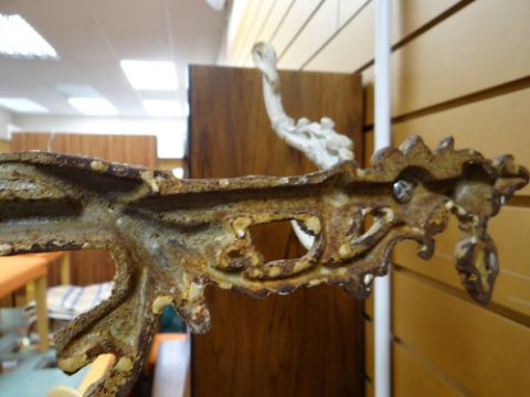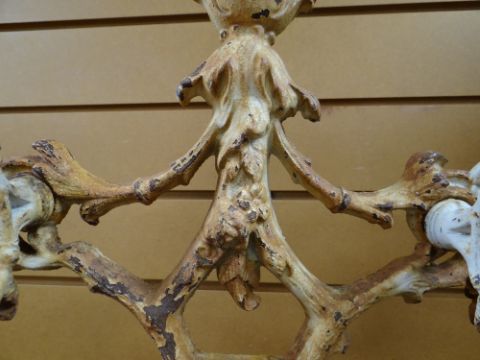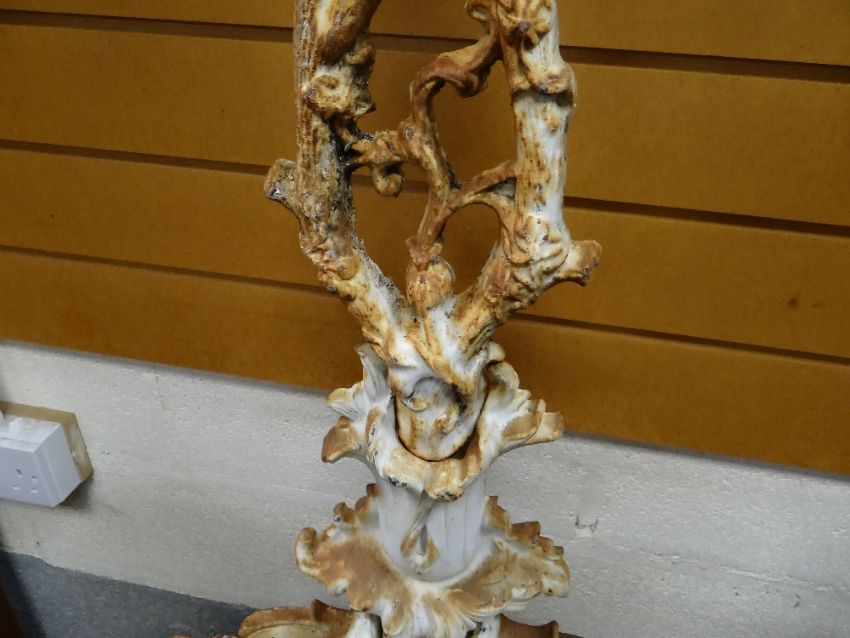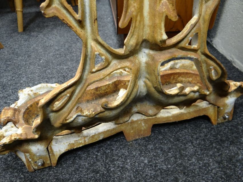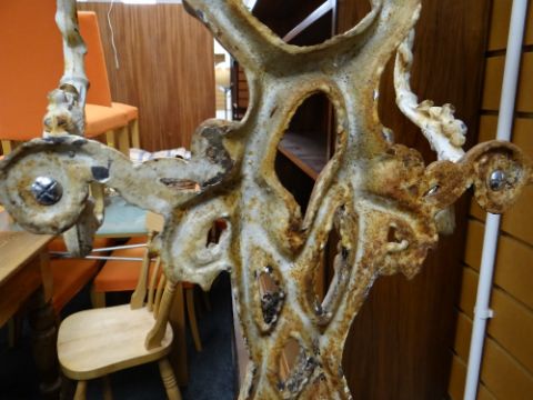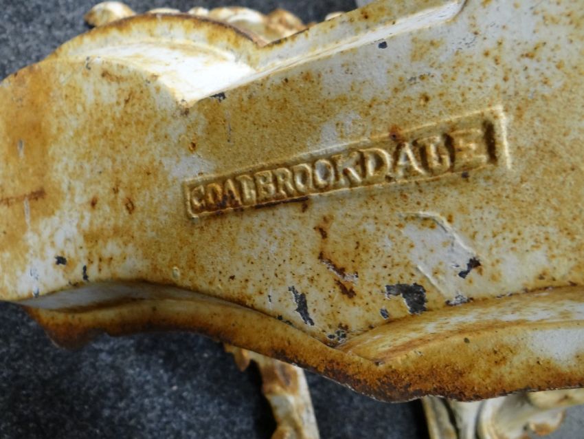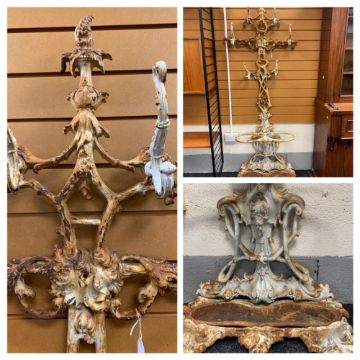 VICTORIAN COALBROOKDALE CAST IRON HALL STAND, white painted and case with fruiting vine decoration, drip pan marked 'Coalbrookdale', 204 x 74 x 34cms