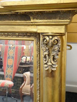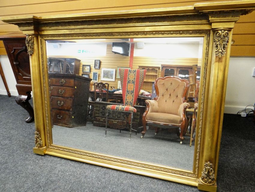 LARGE REPRODUCTION GILT OVERMANTEL MIRROR, 114 x 172cms