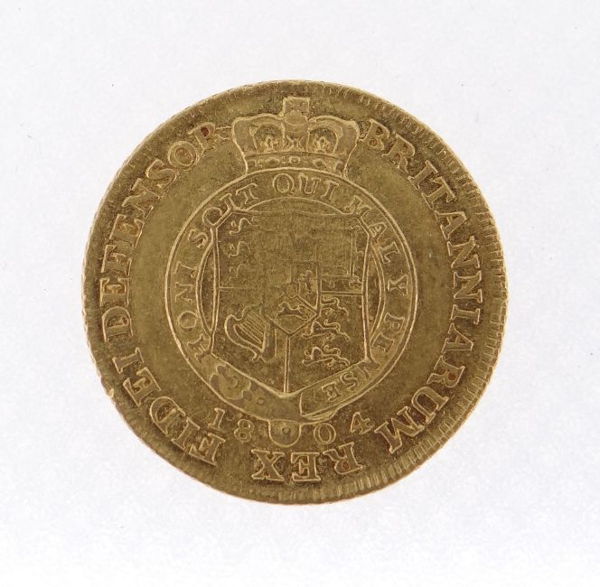 GEORGE III GOLD HALF GUINEA, 1804, laureate head right, shield in garter, 4.1gms