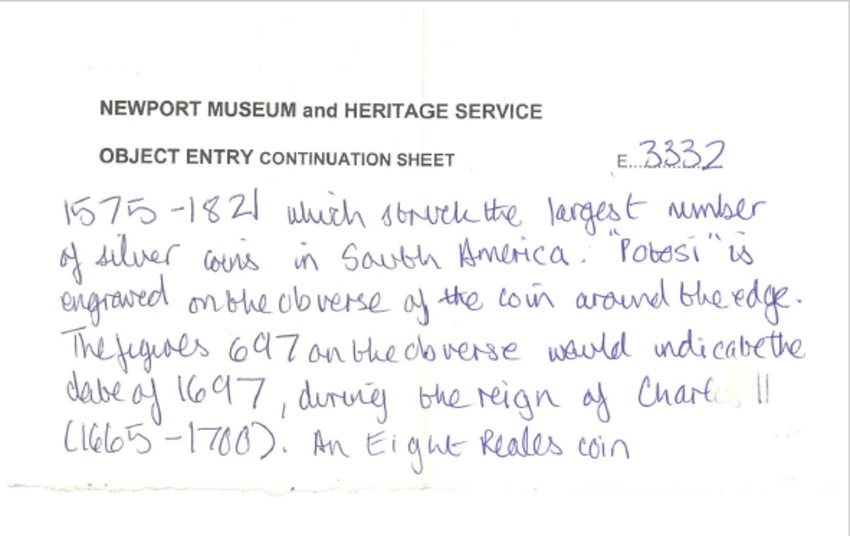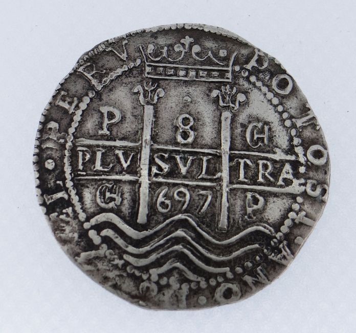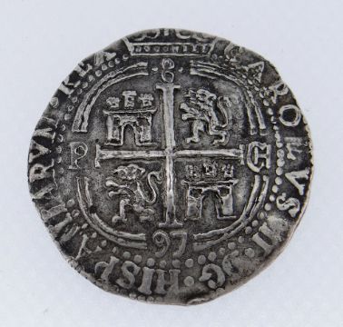 BELIEVED 1697 CHARLES II 8 REALES COIN, Potosi Mint, Bolivia.