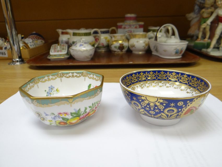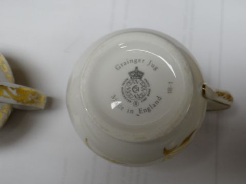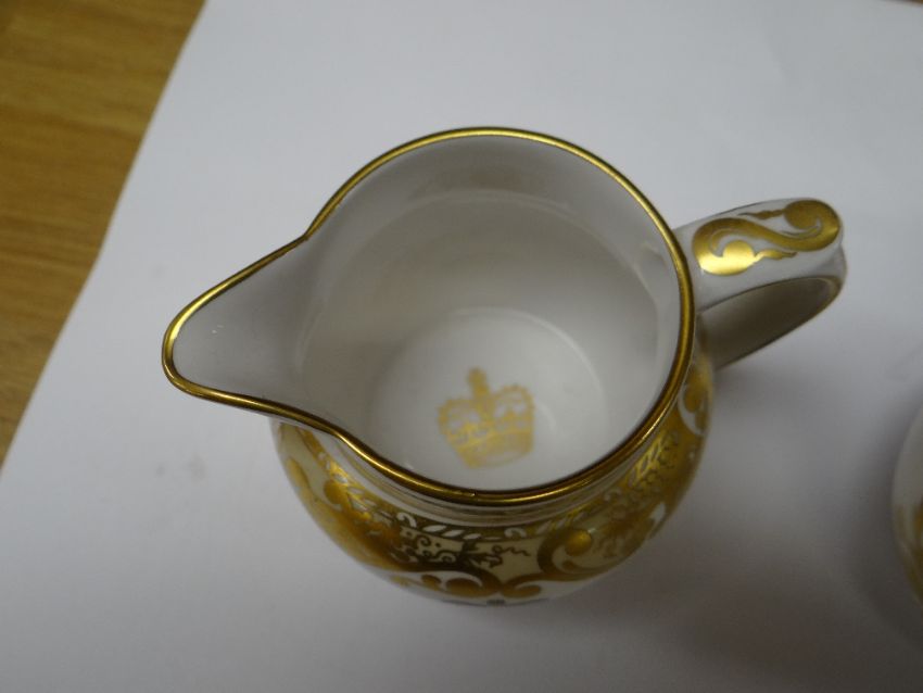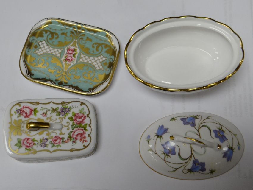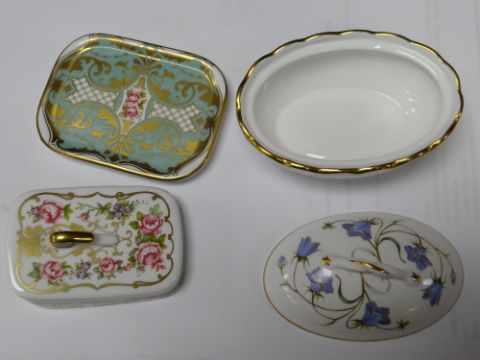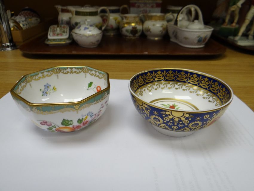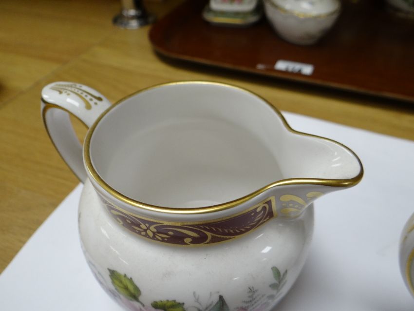 COLLECTION OF MODERN SPODE BONE CHINA ORNAMENTS, including colour printed jugs, quill stand, miniature teapot, cheese dish and bowls, Copeland stone china tea caddy ETC (16)