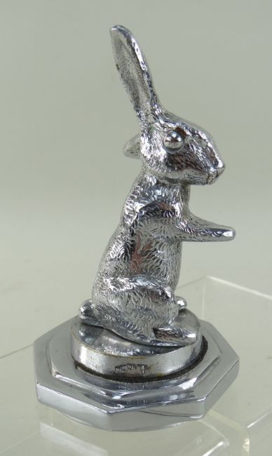 SEATED RABBIT CAR MASCOT, by Desmo, 11.5cms high on octagonal mount