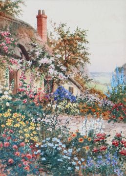 FIVE WATERCOLOUR PAINTINGS comprising C. KIPLING, a pair - river meadow landscapes with cows, 24 x 34cms and EDWARD C. BOOTH - figures by a riverside, entitled 'Staithside, Whitby', signed, titled and dated 1892, 25 x 34cms, JOSEPH HALFORD ROSS watercolours, a pair - thatched cottages with summer flowers, signed, 37 x 27cms (5)