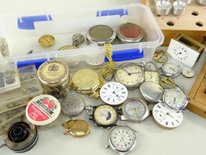 ASSORTED WATCH PARTS, including screws, spring bars, crystal setting dies ETC