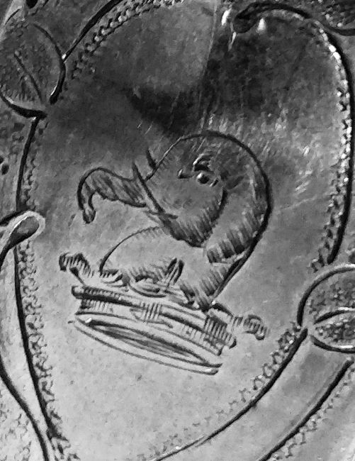 ASSORTED SILVER FLATWARE comprising pair of George III engraved silver spoons with family crest 'out of a ducal coronet, an elephant's head' being for Knowles, Pelly or several other families, London 1772, maker believed George Smith II, together with set of six William IV silver and bone dessert knives and forks, Sheffield 1833, Aaron Hadfield (14)
